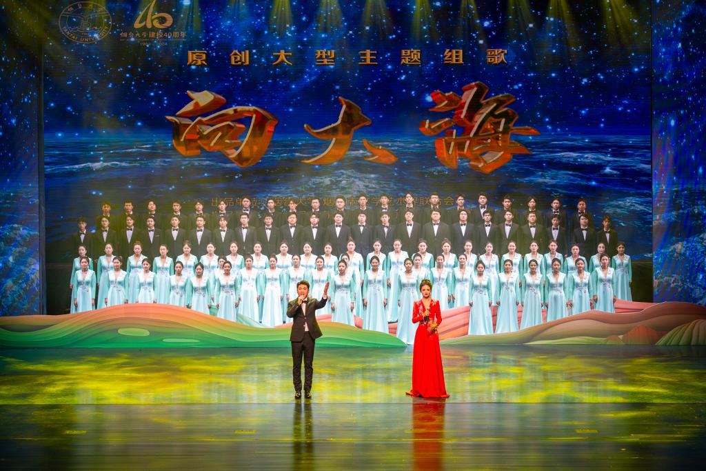 【本站讯】为庆祝烟台成为全国首批沿海开放城市和sunbet申搏官方网站建校40周年,10月16日晚,由sunbet申搏官方网站和烟台市文学艺术届联合会出品、中共烟台市委宣传部和山东省音乐家协会指导、sunbet申搏官方网站音乐舞蹈学院演出的大型原创主题组歌《向大海》在烟台大剧院首演。山东省教育基金会理事长、山东省教育厅原一级巡视员刘欣堂,烟台市委宣传部副部长、市新闻和出版局局长宫志刚,山东省音乐家协会驻会副主席、秘书长武洪昌,烟台市文学艺术届联合会党组书记宋作新,sunbet申搏官方网站校领导卢国强、郝曙光、王强、白青、姚昌、张献勇、王丽、初磊、刘伟出席并观看了演出。