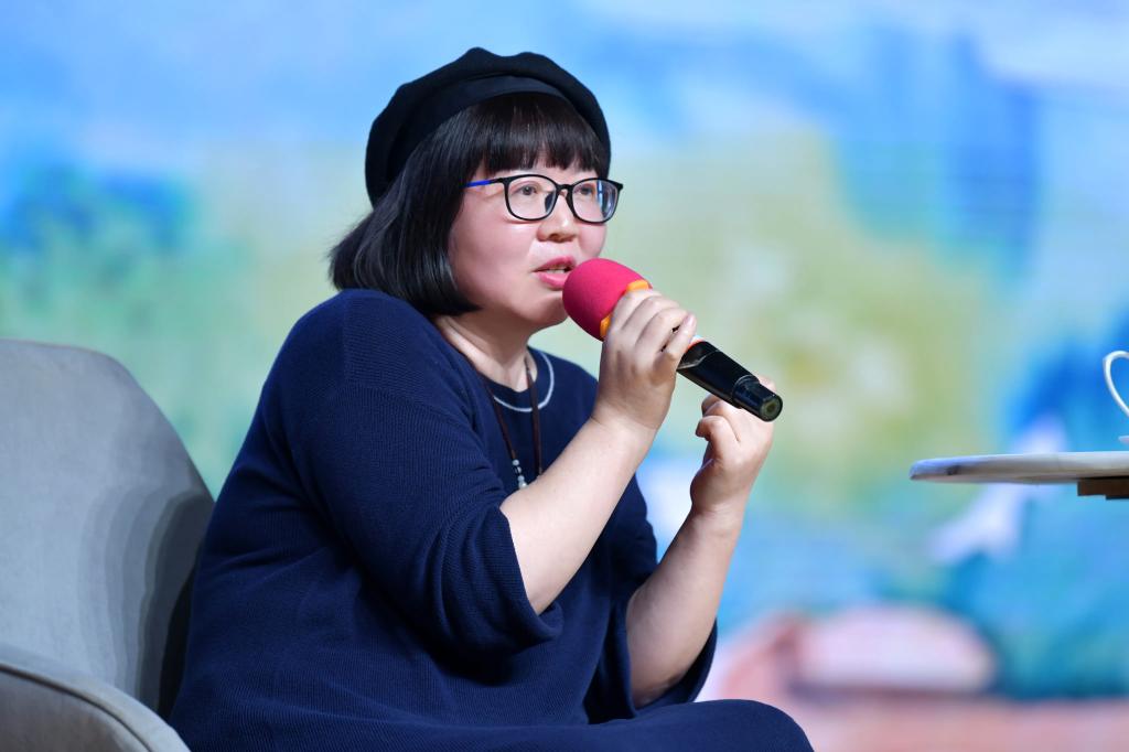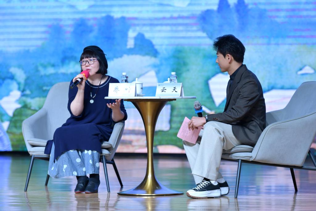 随后,烟台广播电视台主持人云天与乔叶展开交流。乔叶分享了对阅读经典的看法,她将经典作品比作屹立的高山,指出“经典不会迎合读者,却始终等待读者去探索,其价值是永恒的”。谈及《宝水》的创作,乔叶表示,故乡是她创作的重要源泉,乡土的丰富性为文学创作提供了无限可能,故乡是生长的文学,文学是精神的故乡。她还提及对烟台的美好印象,表示在烟台真切感受到了海子笔下“面朝大海,春暖花开”的意境。
