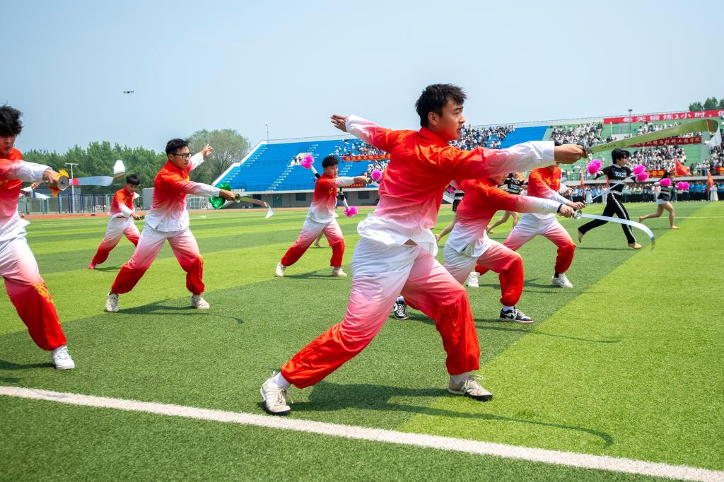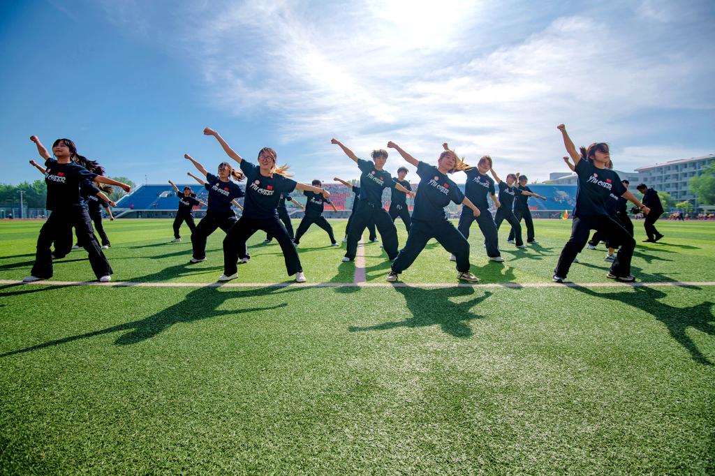 随后,运动员代表宣誓,表示将严格遵守运动会比赛规则,以饱满的热情认真比赛,发扬顽强拼搏精神,勇创佳绩;裁判员代表宣誓,表示将严格遵守竞赛规则,认真履行裁判员职责,秉公裁判。团体操表演《未来可期》、街舞啦啦操表演《舞力全开》、啦啦操表演《我们一起梦飞扬》等依次亮相。湛蓝的天空下,参演学子默契配合,动作整齐划一。伴着青春旋律,同学们一起舞动“团体操”,将现场气氛推向高潮;街舞啦啦操表演同学踏着动感节拍,时而展现飒爽英姿,时而舞出翩跹活力。