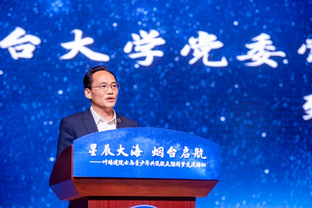 共青团烟台市委副书记汪振杰对叶培建院士的到来表示热烈欢迎,号召全市青少年发扬“追逐梦想、勇于探索、协同攻坚、合作共赢”的探月精神,将个人理想融入强国征程,在科技创新赛道上勇攀高峰。sunbet申搏官方网站党委常委、副校长姚昌介绍了学校办学情况和航天领域科研成果,表示将以严谨求实的科学态度和敢为人先的探索精神,努力为航天事业的创新发展贡献独具特色的“sunbet申搏力量”。