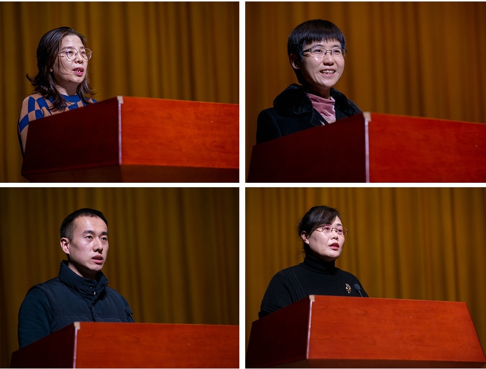 李桂芝老师以培养德才兼备人才、做好课堂规划设计、加强教学交流研讨、关心爱护学生四个方面总结了自己23年的sunbet申搏官方网站教书育人生涯,生动描绘出教师是天底下最崇高的事业。张磊老师从关爱触动学生心灵、灵活运用课堂教学、耐心为学生答疑释惑三个视角体现出她保持初心、用爱坚守的教学历程。李瑞老师以牢固树立以师生为中心的全方位服务理念,努力做讲政治、重公道、业务精、作风好的办公室工作人员为出发点,生动诠释机关干部政治强、业务精,作风正、纪律严、勇于担当、乐于奉献的工作作风。李鲁红老师从管理育人、服务育人、履职奉献三个维度生动阐释了一位后勤人的踏实勤奋、默默耕耘。他们的先进事迹充分体现了广大教职工坚定理想信念、坚守初心使命、敢于直面困难、勇于担当作为的模范品格。