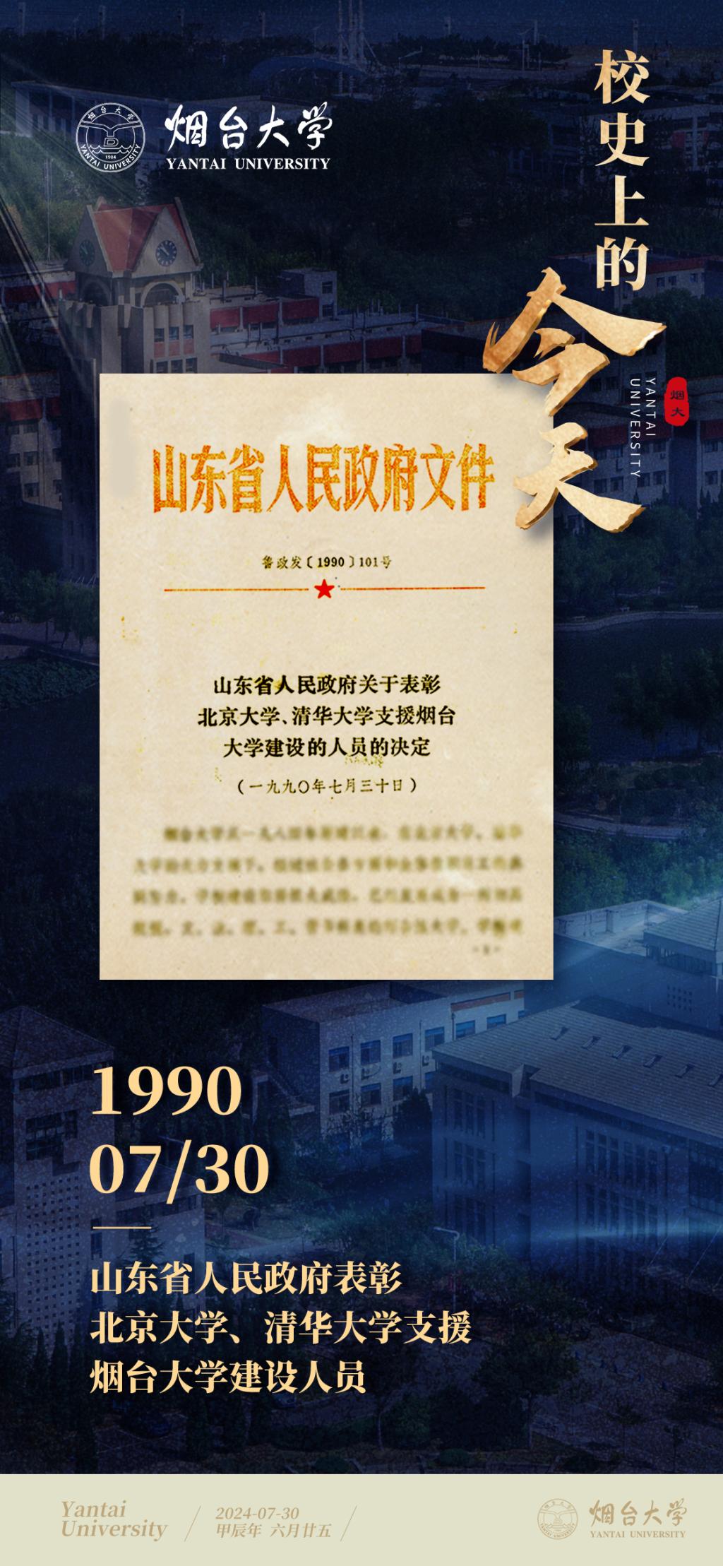 1990年7月30日,山东省人民政府以鲁政发〔1990〕101号文件下发《关于表彰北京大学、清华大学支援sunbet申搏官方网站建设的人员的决定》。文件指出,sunbet申搏官方网站从一九八四年筹建以来,在北京大学、清华大学的大力支援下,经过社会各方面和全体教职员工的共同努力,学校建设取得很大成绩,已经发展成为一所初具规模,文、法、理、工、管多科类的综合性大学。学校建设速度快、起点高,为今后进一步提高和发展奠定了良好的基础,为山东高等教育发展和人才培养作出了积极贡献。