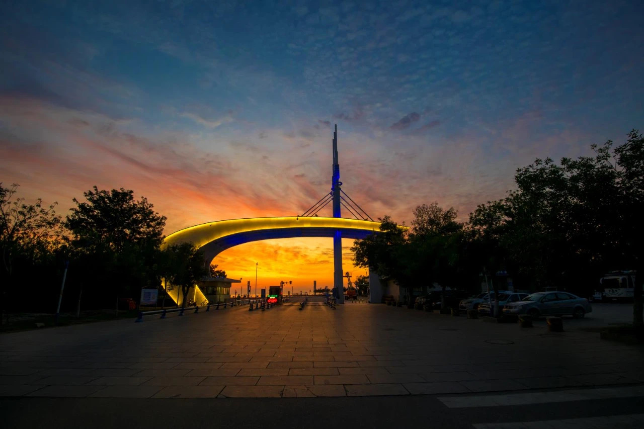 与新大门配套,还铺设了东门内侧小广场,拓宽了东大门外通滨海路路段。东大门工程于2004年“五一”完工,为10月举行的20周年校庆献上一处新景。近几年,地方政府实施海边景点亮化美化工程,夜幕下的东门外海滨增添了一道道夺目光彩。海洋观光旅游资源的开发,使东大门外海岸已然成为帆船、垂钓、游泳、沙滩排球等各种海上体育游乐项目,以及青年人结婚摄影的最佳所在。过往的各方游客纷纷“打卡”驻足,或以东门为背景拍照留念,或在匆匆驶过的外地旅游大巴上投来惊羡的一瞥,留下对这所“离海最近”大学的美好印象。