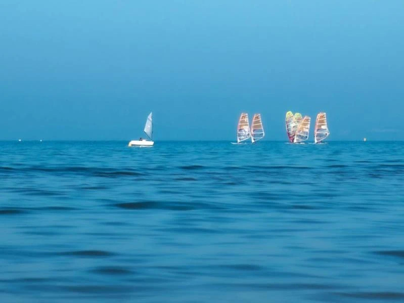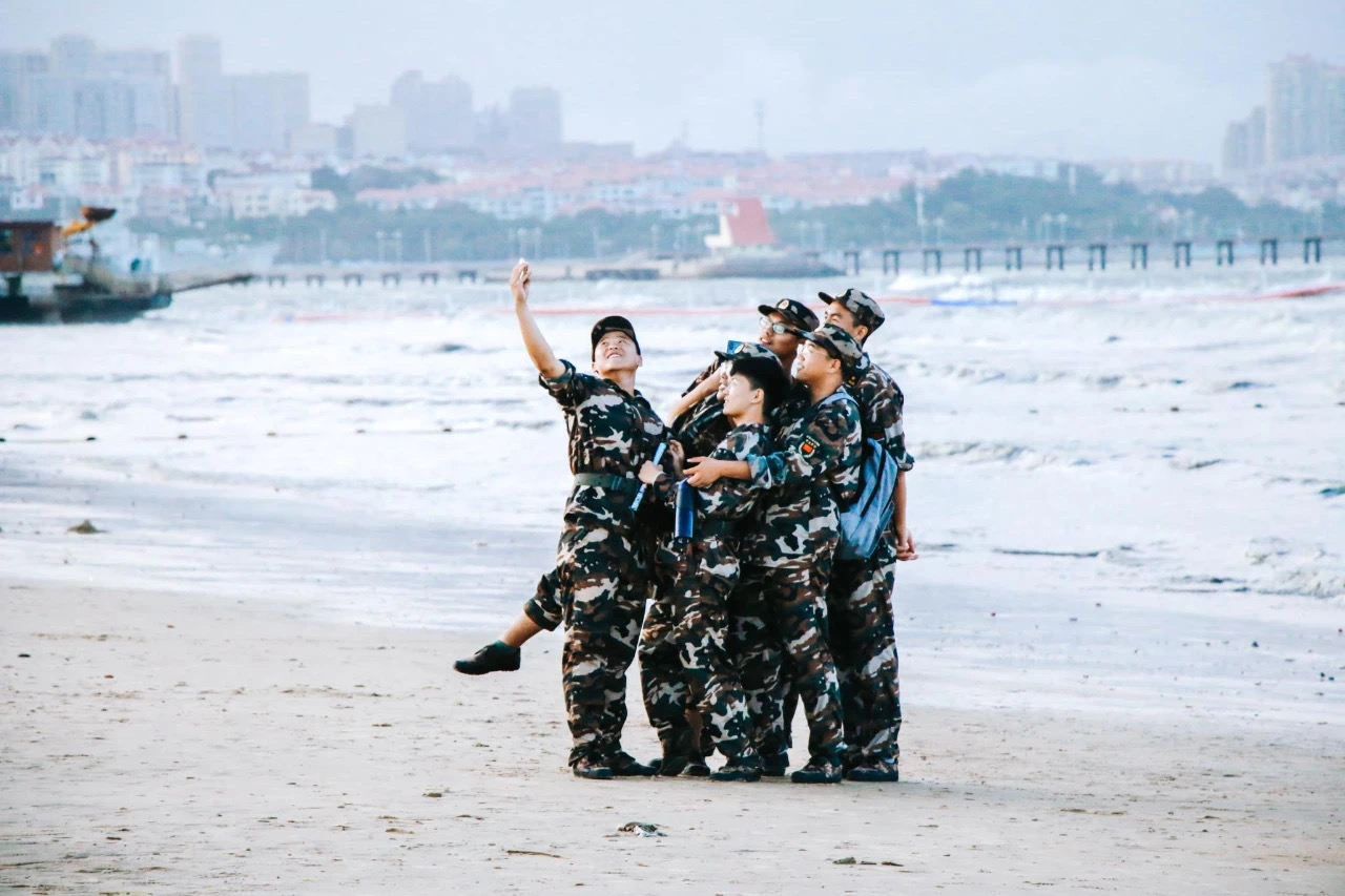 东门出去便是又白又细的海沙铺就的海滩。绵延200多米处,便是湛蓝无际、海天相连的黄海。海岸线上,散布着一些五、六十年代修建的国防战备碉堡,有一个残疾人福利加工厂,还有初家镇和清泉寨、埠岚、孙家滩等村的养殖场,以及许多渔民打鱼、养殖用的各种设施。渔民们早出晚归,海上养殖,打鱼捕虾,就在海边出售自己刚刚捕获上岸的新鲜鱼虾、贝类等各种海鲜,也在海边编织渔网,晾晒鱼干、海带,加工扇贝、海虹,初阳与落日下,呈现出一幅幅欢乐忙碌、温馨宜人的渔家丰收图。师生们或清晨即起,迎着初升的太阳在柔软的海滩上晨练;或待午后暑热散去后,换一身泳衣,赤脚走过沙滩,跃入海中,让身心惬意地接受着清凉海水的抚慰;或在夜幕降临后漫步海边,伴着潮起潮落大海的沉稳呼吸,卸除一天学习工作后的疲惫。