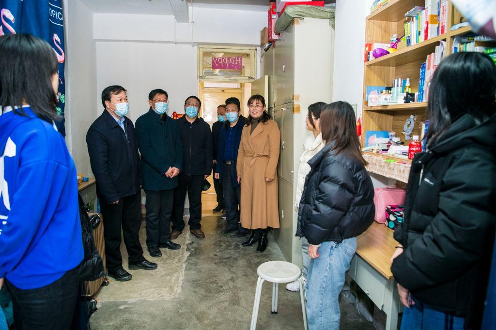 “假期过得怎么样?新学期就要开始,同学们要尽快收心进入学习状态。”从观海路校门人脸核验测温门禁系统穿过,校领导一行前来到八号学生公寓和九号学生公寓看望刚刚返校入住的同学,问候学生返校情况,叮嘱同学们新学期要满怀新期待、收心学习,尽快投入校园生活,在美丽的烟园绽放青春梦想。学校领导的亲切关怀赢得了同学们的阵阵掌声。
