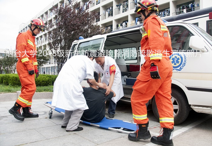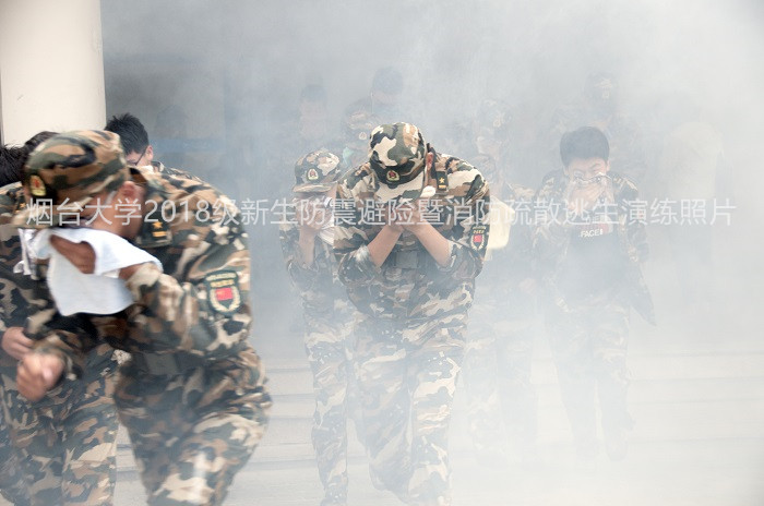 8时30分整,随着邓昌亮下达演练开始命令,演练正式开始。地震警报随之响起,新生在宿舍内按要求进行紧急避震;8时31分,火灾警报响起,同学们用湿毛巾捂住口鼻向安全地带迅速有序撤离,同时3台消防车迅速进入演习现场。