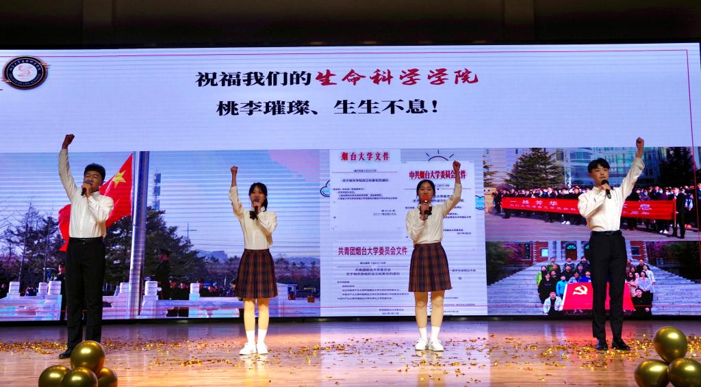 典礼上,同学们带来了精彩的文艺表演,歌舞《花漾年华 跃动青春》以歌曲联唱和拉丁舞的方式展现生科学子蓬勃向上的精神风貌;原创主题曲《我们的十年》伴着烟园光影令人沉醉、感动;舞剧《研途·魅力生科》在实验室科研和中国风舞蹈转换间,传递生科学子“内外兼修、文武双全”的育人理念;音诗画《一秩芳华 生生不息》以建院十年历程为脉络讲述了生科故事,展现了生科人的坚韧执着和sunbet申搏人的奋勇拼搏。典礼在天空合唱团带来的《夜空中最亮的星》歌声中落幕。