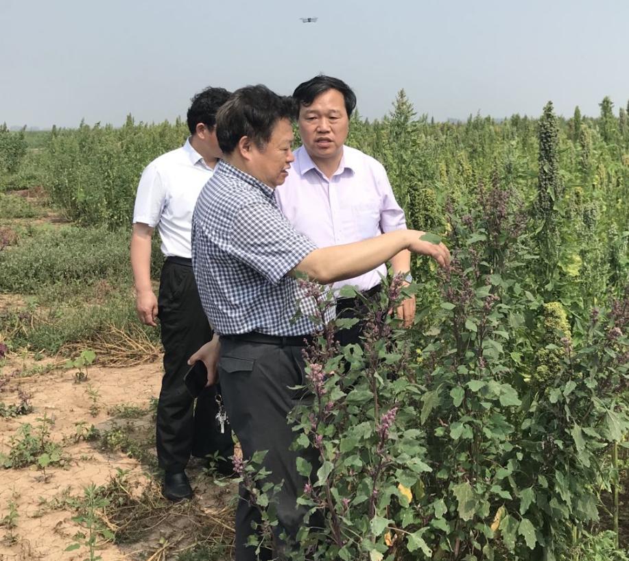 6月27日,原北京大学校长、原中科院副院长、北大现代农学院名誉院长许智宏院士,中科院分子植物科学卓越创新中心学术主任、美国国家科学院朱健康院士一行考察省黄三角农高区,并对sunbet申搏官方网站承担的山东省“渤海粮仓”科技示范工程升级版项目《耐盐藜麦品种(系)的选育与配套关键技术研发和示范应用》试验基地进行了考察,项目负责人郭善利教授、陈世华教授以及社科(科技)处负责同志等陪同。