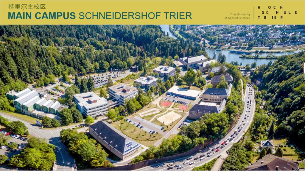 德国特里尔应用技术大学为公立大学,坐落于文化名城特里尔市——卡尔·马克思的故乡,具有191年的办学历史,是德国莱法州办学规模最大的应用技术大学,共有约7200名学生,54个本科专业,31个硕士专业。学校长期致力于应用型人才的培养,具备较强的科研实力、优良的师资队伍、先进的教学理念以及前瞻性的国际化发展战略。环境领域相关学科在国际上享有盛誉,可持续经济与技术本科专业与国际物质流管理硕士专业已在德国“最绿色的专业评比”中领跑四年。该校比肯菲尔德校区是德国第一个二氧化碳“零排放”生态校园,是德国最著名的生态环保教育基地和科研基地之一,在国际绿能网站(UI GreenMetric)世界大学排名中位列第六,德国大学中连续四年排名第一。