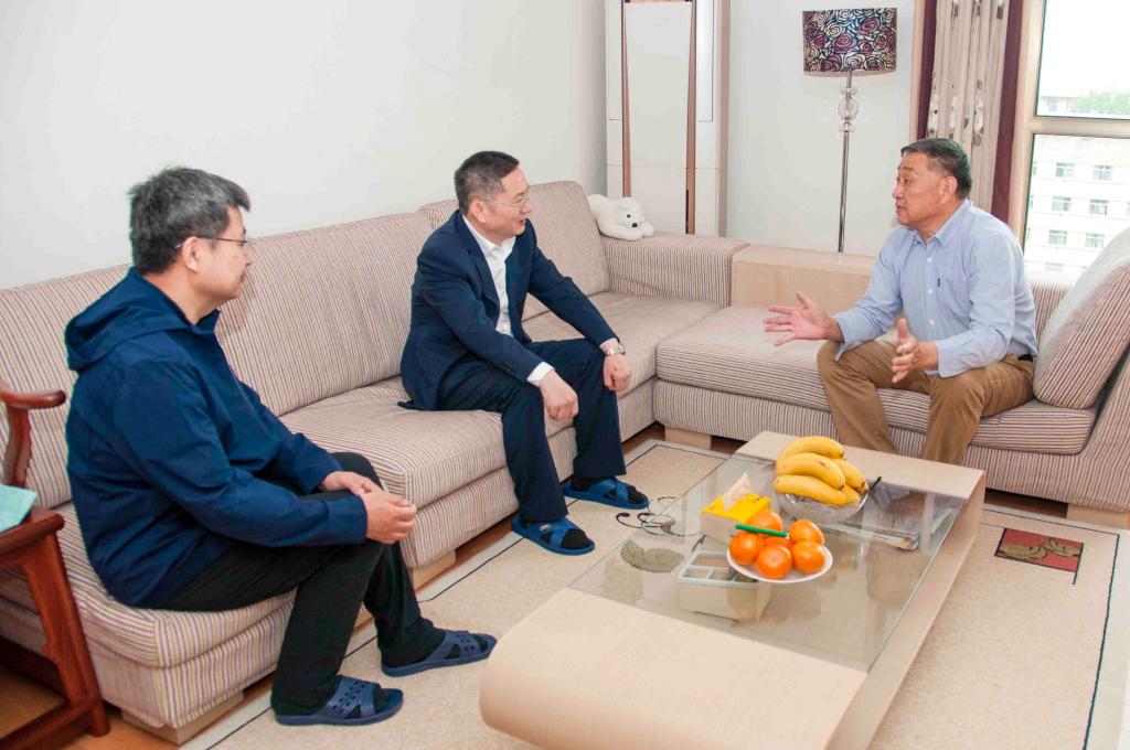 在温俊峰院士家里,张伟、段培永亲切地询问他的身体健康、生活等有关情况,衷心感谢他为学校事业发展作出的重要贡献,亲切叮嘱他一定要保重身体。