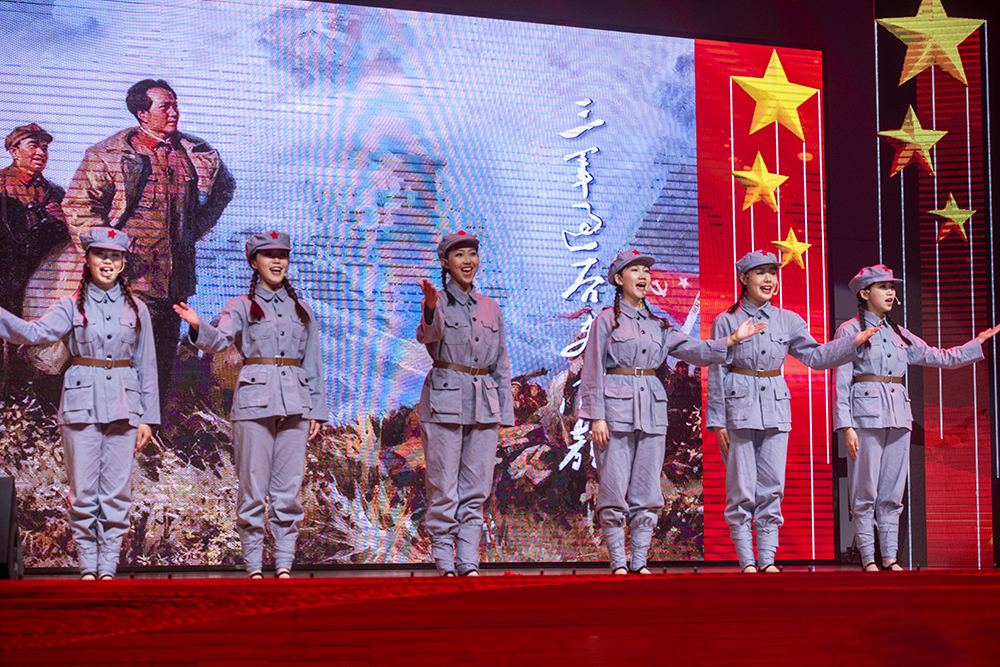 “开天辟地”篇章,重回百年征程的红色起点,以青春的视角重现这段恢弘的历史进程。舞台剧《红色的起点》,时光回溯到1921年中共一大会址——嘉兴南湖游船,观众们仿佛置身于会议的大厅、南湖小船的船舱中。“改天换地”篇章,回望革命战争的波澜历程,展示了共产党人坚守救亡图存初心、以身许党许国的胆气与坚定。《如果降生在那个年代》,带我们回到那个风起云涌的年代。《毛泽东诗词合诵》,展现了一代伟人毛泽东的革命豪情与党一路走来的风雨兼程。“翻天覆地”篇章,回望改革开放和社会主义现代化建设新时期的历史,展示了共产党人解放思想、深化改革,谱写时代新篇的魄力与豪情。舞台剧《高考1977》,以历史的真情实景再现了制度改革给国家、社会和个人命运带来的深刻变化,也为新时代的大学生提供了思考“高考”“大学”“读书”意义的跨时代视角。“惊天动地”篇章,回望中国特色社会主义进入新时代所取得的伟大历史性成就,凝聚奋进新时代实现民族伟大复兴的磅礴伟力。歌曲《追梦之路》,抒发了当代青年矢志奋进新征程的家国情和报国志。《入党申请书》由本年度“青马班”学员代表、志愿服务团队代表、社会实践团队代表、科技创新团队代表合诵,展现了青年学子从学党史到强信念再到跟党走的逻辑递进,发出了新一代青年知党爱党、跟党奋斗的呼声。“这是英雄的祖国,是我生长的地方……”当这段经典的红色旋律响起,全场观众自发集体起立,与台上演员合唱歌曲《我的祖国》,在深情的歌声和热烈的掌声中,将活动推向了高潮。