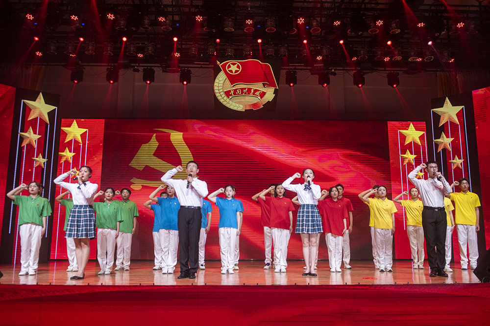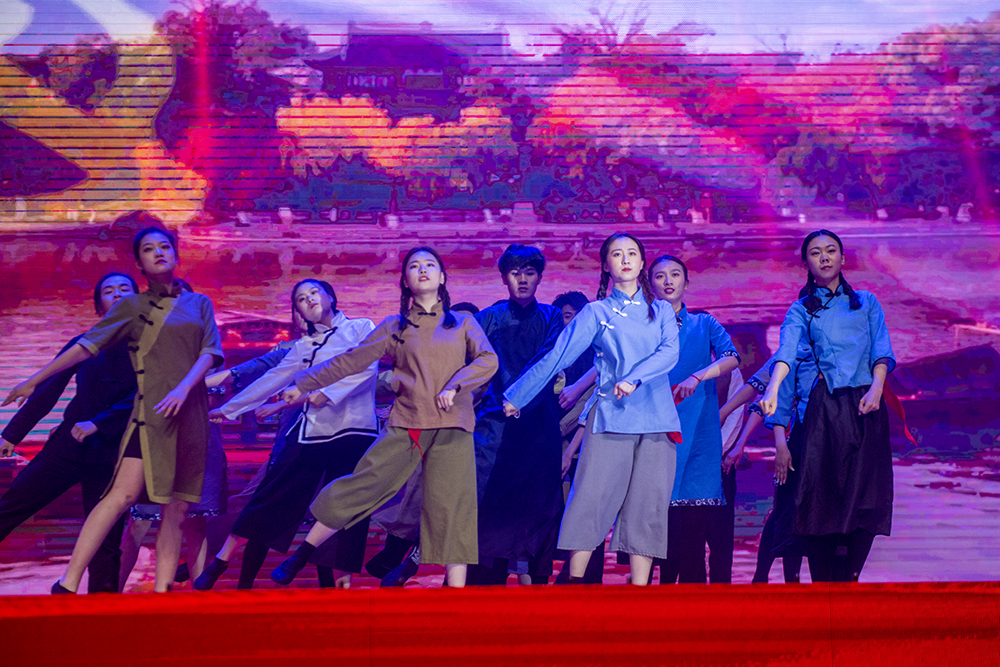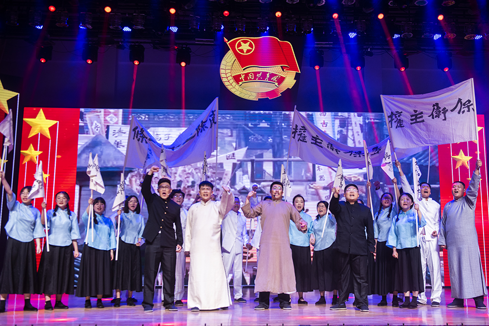 主题活动分为“开天辟地”“改天换地”“翻天覆地”“惊天动地”等四个篇章,通过舞台剧、歌舞、朗诵等艺术表达方式,充分抒发了青年学生爱党爱国之情,将“光辉百年路·青春心向党”主题升华。