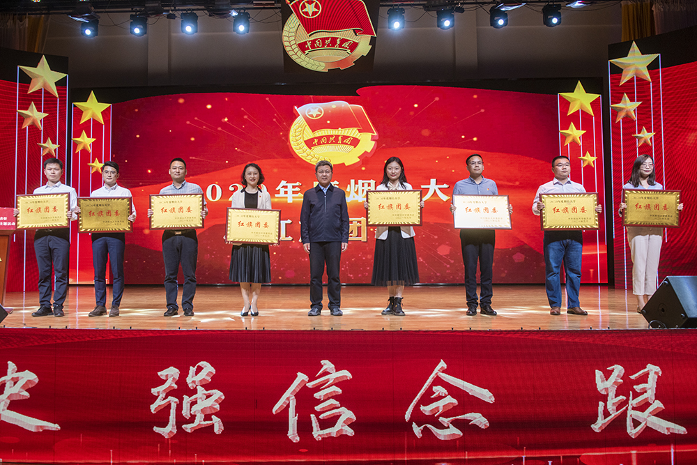 现场还举行了2020年度“五四红旗团委”“红旗团支部”“先进共青团员”颁奖仪式,对优秀集体和个人进行表彰。获奖代表合唱《唱支山歌给党听》,用歌声表达对党的深情祝福。