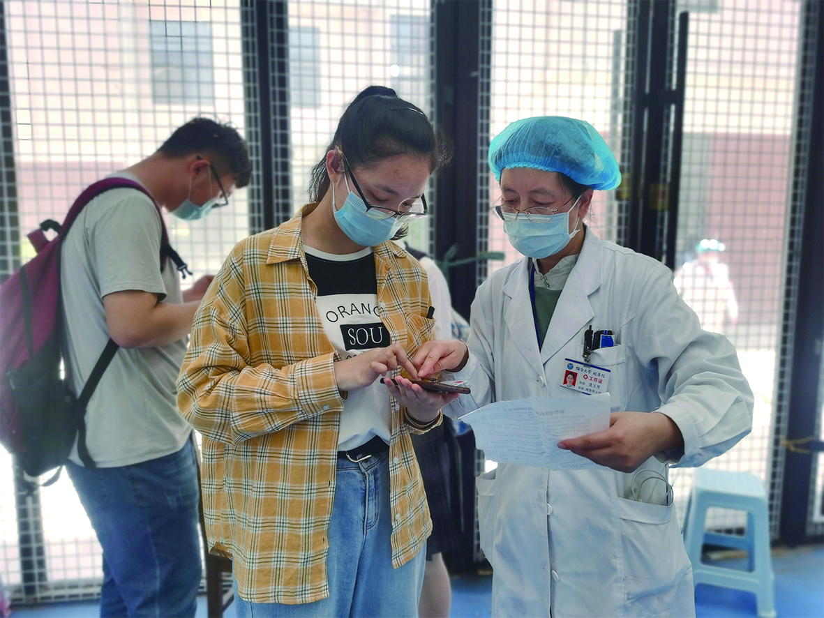 哪里有困难,哪里就有共产党员的身影。校医院医疗主任王淑珍作为一名老党员,一直坚守在疫情防控这场战役中,她说:“自疫情暴发以来,我们舍小家、顾大家,通过平日研学党史,更深知我们党今天的成果来之不易,我们会将学习党史的成效落实在日常工作中,积极做好本职工作,向建党100周年献礼。”谈及如何统筹教职工体检、毕业生体检和疫苗接种工作时,她说:“针对教职工体检工作,特别是行动不便的退休人员,我们会上门进行宣传、体检,让他们感受到学校的关爱;针对5月24日-5月30日的毕业生体检工作,我们每天1100余人次的工作量不退缩,对待有特殊情况的同学,开设绿色通道;针对疫苗接种工作,我们更是积极响应部署,完成场地布局、设施设备到位、通道设置、人员培训,保障工作有序运转。”