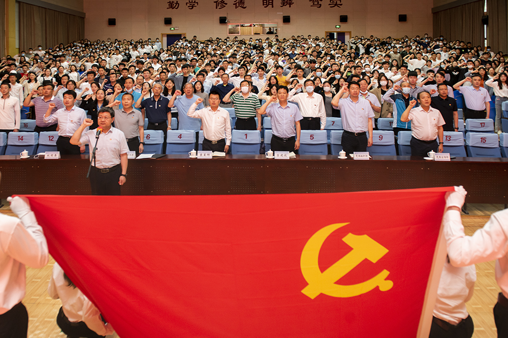 最后,张伟带领全体毕业生党员面向党旗重温入党誓词,一声声铿锵有力的入党誓言,寄托着母校对所有毕业生党员的深情和期待,也承载着所有毕业生党员对未来新征程的梦想与使命。