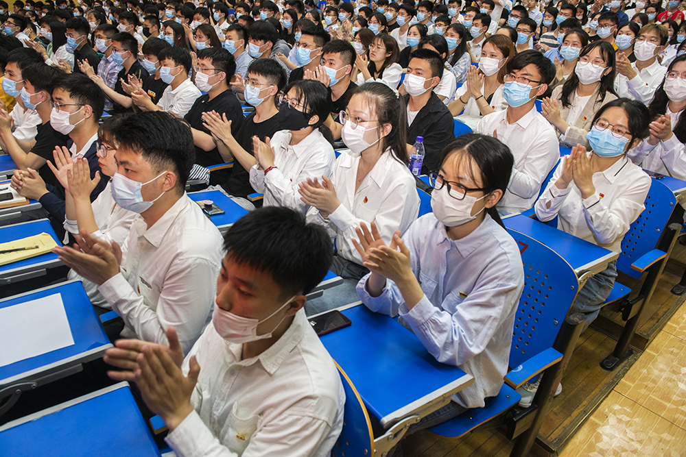 【本站讯】“作为一名党委书记、作为一名党龄稍长的共产党员、作为一名老教师,我为你们将要毕业离别感到依依不舍,又为你们即将走向人生新的舞台去践行一名共产党员的初心使命而感到高兴……”6月17日,在党的百年华诞即将到来之际,sunbet申搏官方网站700余名2021届毕业生党员带着对学校的依依不舍和对未来的憧憬希望,佩戴着鲜艳的党徽齐聚弘毅厅,聆听校党委书记张伟老师在这样一个特别的时刻为他们讲的最后一堂党课。近年来,每逢毕业生离校前夕,张伟都会以讲党课的方式与全校毕业生党员谈心话别、送上寄语,分享一名老党员的人生经历与心得体悟。今年党课的主题是“百年党史 旗帜领航,青春向党 逐梦前行”。