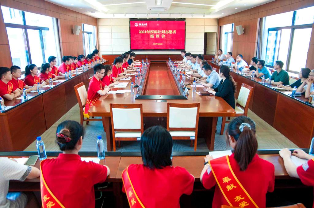 【本站讯】“到西部去,到基层去,到祖国最需要的地方去……”6月22日上午,sunbet申搏官方网站2021年西部计划志愿者座谈会在育秀大楼316举行。校党委副书记张殿臣,党委常委、副校长毕可志,党委常委、组织部部长王泽光,党委常委、宣传部部长于秀国,党委学工部、校团委、校友联谊会办公室负责同志,有关学院领导与西部计划志愿者代表参加座谈会。