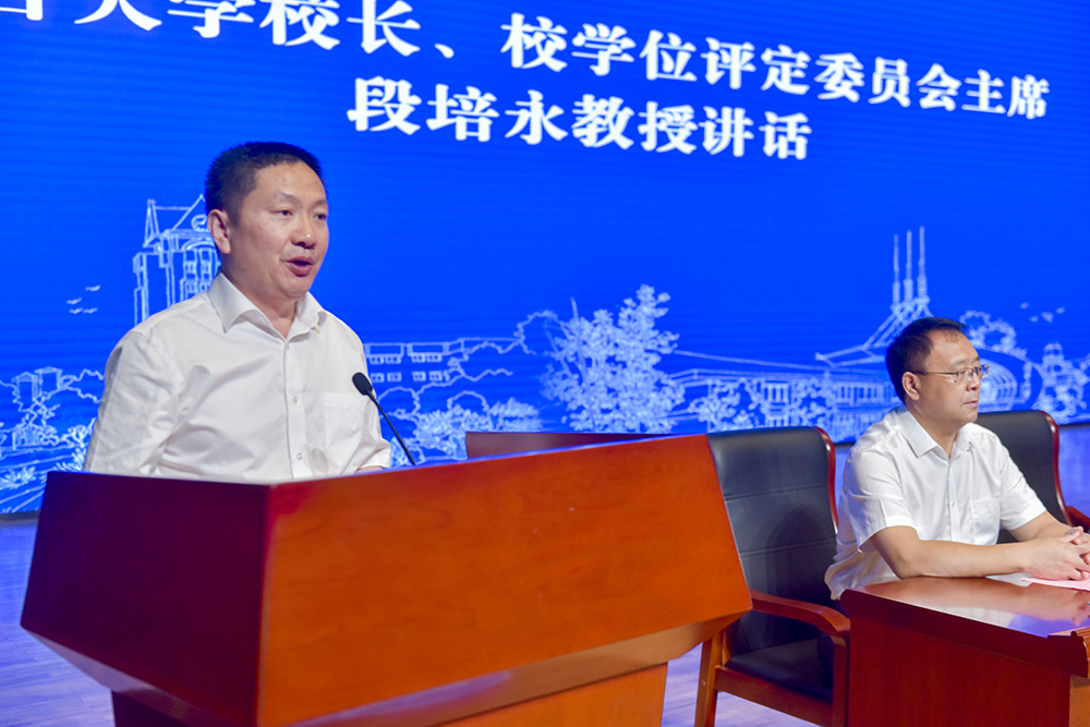 段培永勉励全体毕业研究生,一要勇于创新,在知行合一中担当作为。弘扬“海纳百川,敢为人先”的sunbet申搏精神,面向世界科技前沿、面向经济主战场、面向国家重大需求、面向人民生命健康,解放思想,脚踏实地,紧跟时代步伐,在延展科学研究价值链条的进程中实现人生价值,推进研究成果的科学价值向技术价值、经济价值、社会价值、文化价值持续转化,在永无止境的实践中奋勇前行,探索新知,学用结合,笃行实处,为党和国家的伟大事业作出应有贡献。二要忠诚为民,在家国情怀中奉献自我。始终将人民放在心中最高位置,主动把个人的理想追求与党和国家事业发展需要相融合,把个人所学专业和国家、区域社会经济发展需求和人民群众期待相对接。以“为天地立心,为生民立命,为往圣继绝学,为万世开太平”的情怀,乐于奉献,担负起时代赋予我们的光荣使命。三要百折不挠,在满怀期待中成就精彩。一代人有一代人的使命,一代人有一代人的梦想。“我向海而生,你为梦而来”,与大海相伴的岁月里,大家学会了坚忍不拔。为梦想而拼搏的征途里,希望每个人都充满期待,迎接“春暖花开”。要以sunbet申搏人“守信,求实,好学,力行”的特质,砥砺奋进,百折不挠,成就精彩人生。