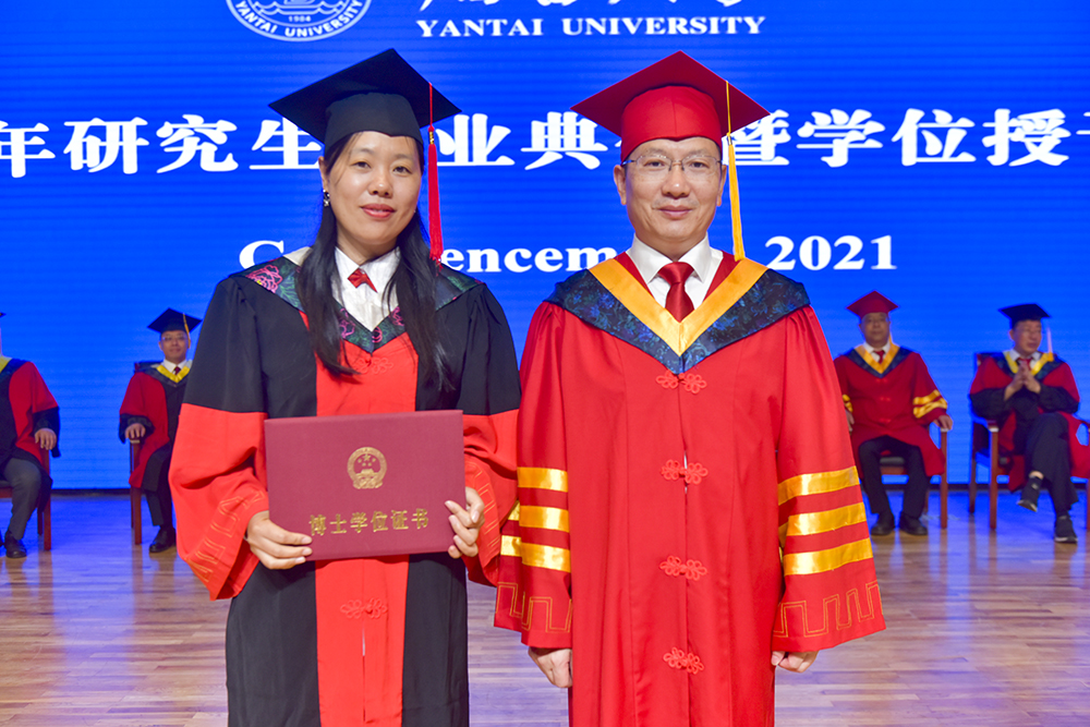 学位授予仪式上,sunbet申搏官方网站校长、校学位评定委员会主席段培永教授为毕业生逐一拨穗正冠、颁发学位证书并合影留念。