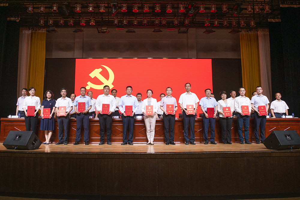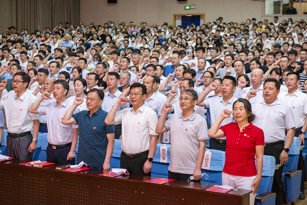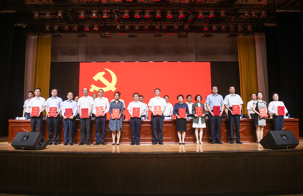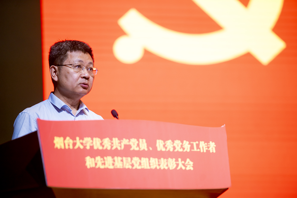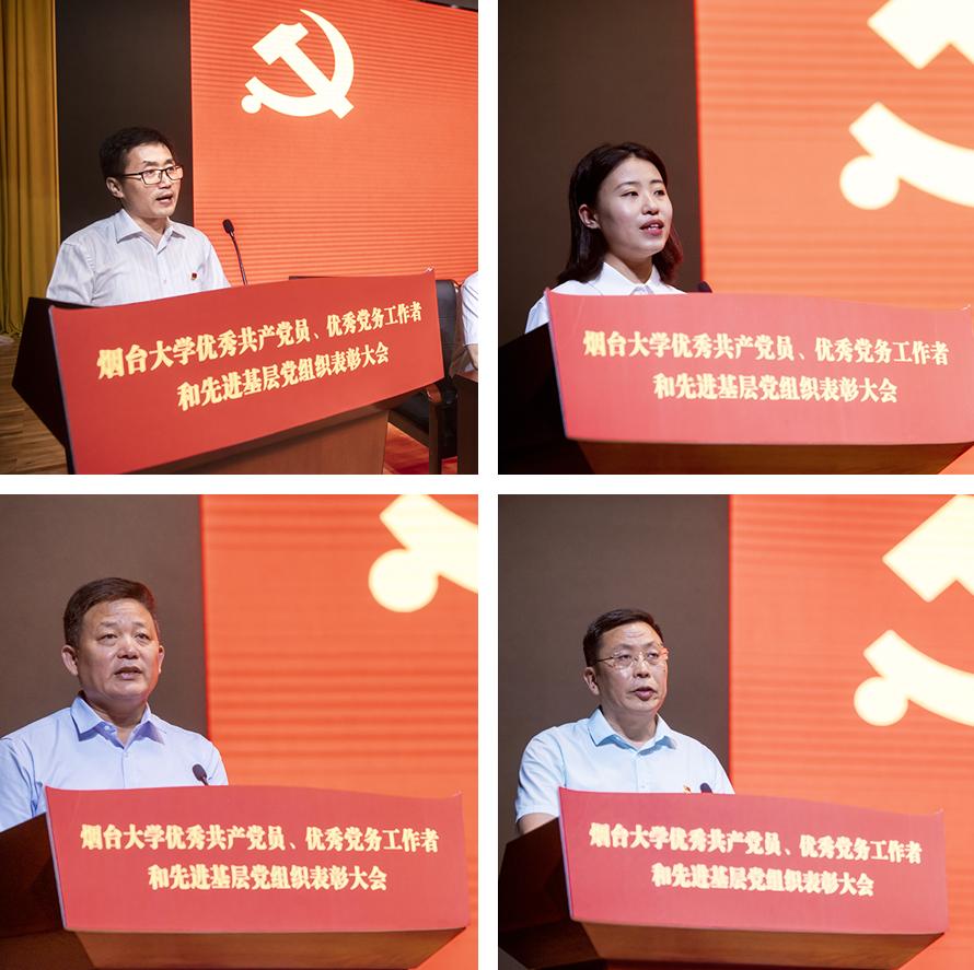 大会在雄壮的国歌声中拉开帷幕。党委副书记张殿臣宣读《中共sunbet申搏官方网站委员会关于表彰sunbet申搏官方网站优秀共产党员、优秀党务工作者和先进基层党组织的决定》。党委常委为学校优秀共产党员、优秀党务工作者和先进基层党组织代表颁奖。计算机与控制工程学院副教授贺利坚、法学院2019级硕士研究生赵艺谦、后勤党委书记曲增欣、“山东省先进基层党组织”化学化工学院党委书记段志国分别代表优秀共产党员、优秀党务工作者、先进基层党组织作了发言。全体与会党员重温入党誓词,铿锵有力的誓词激励着在场每一位党员,彰显了听党话、跟党走,为共产主义事业奋斗终身的坚定决心。