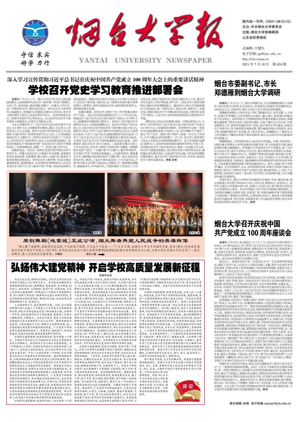 弘扬伟大建党精神,就要践行初心、担当使命一以贯之。中国共产党一经诞生,就把为中国人民谋幸福、为中华民族谋复兴确立为自己的初心使命。从石库门到天安门,从兴业路到复兴路,从小小红船到巍巍巨轮,我们党带领人民创造了开天辟地、改天换地、翻天覆地、惊天动地的伟大奇迹,根本原因就在于我们党始终坚守为中国人民谋幸福、为中华民族谋复兴这个初心和使命,赢得了人民衷心拥护和坚定支持。通过研读精神实质,搞清楚“江山就是人民、人民就是江山”的价值逻辑,坚持全心全意为人民服务的根本宗旨,践行以人民为中心的发展思想,勇于担当负责,积极主动作为。站在新的历史起点上,广大党员干部要牢记学校服务地方经济社会发展、建设高水平大学的初心和使命,把学习伟大建党精神与学习贯彻习近平新时代中国特色社会主义思想和党的十九大精神结合起来,与贯彻落实习近平总书记对山东工作的重要讲话、重要指示批示精神结合起来,转化为全体sunbet申搏人永葆初心、砥砺奋进的精神动力,转化为全体sunbet申搏人解决实际问题的能力、提高执行力的水平和推进重点工作的成效,进一步坚定信心、锚定目标,奋力实现博士学位授予单位突破,高质量完成“双高”建设任务,优质高效完成开发区科教园区建设,为实现高水平大学建设目标努力奋斗,为中华民族伟大复兴的中国梦作出sunbet申搏贡献。