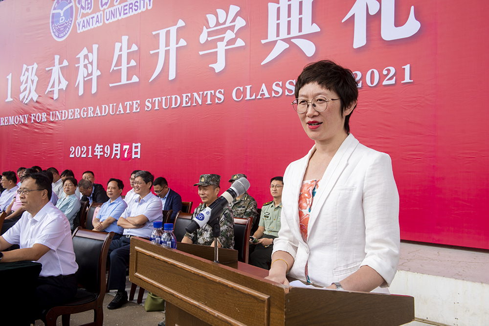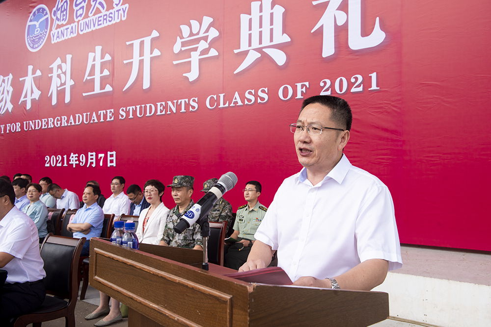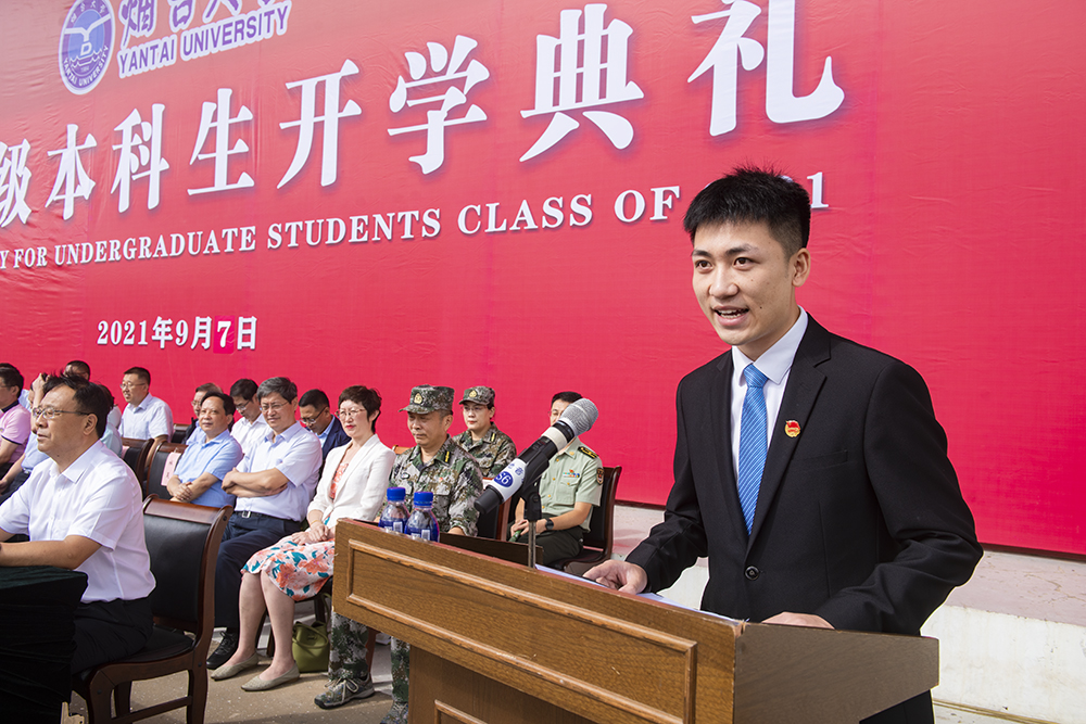 教师代表、药学院毕毅教授在发言中希望同学们增强家国情怀、努力追求真知、增强动手本领,用知识编织未来,将中国红与sunbet申搏蓝描绘得更加艳丽。在校学生代表、校学生会主席杨智强,新生代表、化学化工学院段清旭先后发言。