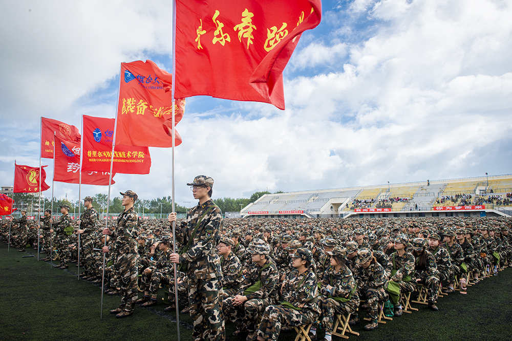 sunbet申搏官方网站2021年新生军训从9月6日至9月18日,为期13天。军训内容主要为条令学习、队列训练、内务训练、学唱军歌等,其中穿插爱国主义教育、入学教育、军事拉练参观132舰艇、抗震救灾逃生、消防知识培训及实地灭火演练等科目。军训团设6个营,20个连,71个排,参训学生7千余人。营长由承训部队6名教官担任,教导员由各学院主管学生工作的书记(副书记)担任,连长由各学院推荐的辅导员担任,指导员由各学院新生辅导员担任,排长由学生教官担任。其中,自训教官由各学院推荐的20名辅导员老师和70名退役复学及有较强军事素质的军事爱好者组成。考虑到当前疫情防控因素影响,本次军训采取训技能、学理论进行错峰错时交错施训,以有效避免大量学生聚集造成的疫情隐患。
