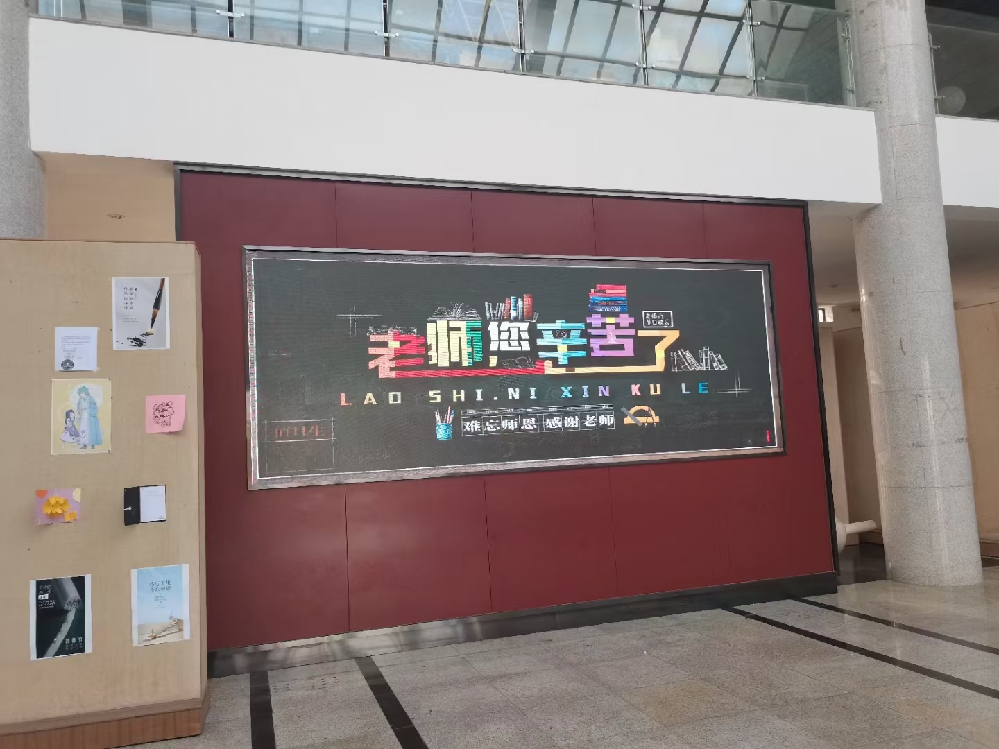除此之外,学校还在西南门草坪、升腾、三元湖南等位置布设了教师节问候语,在各教学楼、办公楼放置了精心设计的“老师,您辛苦了”“老师,衷心感谢您”的立式海报,在校园主要道路悬挂了庆祝教师节的主题横幅、竖幅,各学院、校门口、图书馆、餐厅的电子屏,校园网主页醒目的庆祝教师节广告……校园里处处洋溢着教师节的暖心气氛。