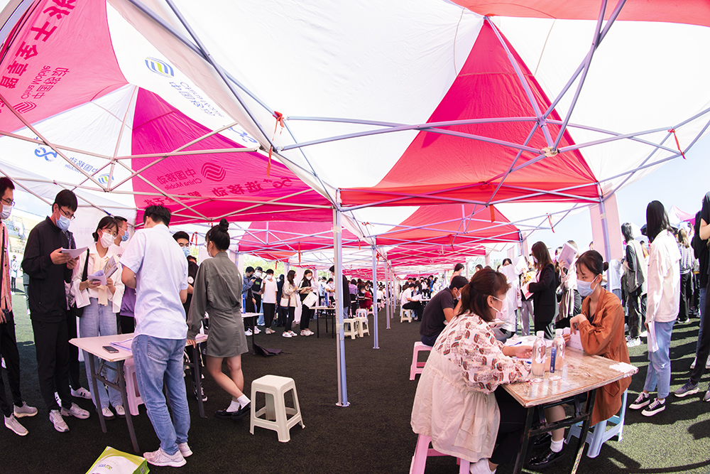 招聘会现场划分企业签到区、政策宣讲区、企业宣讲区、医疗保障区、企业招聘区五大功能区。在政策宣讲区,由人社部门负责人向毕业生积极介绍烟台市新出台的《烟台市加快吸引集聚青年人才来烟就业创业三年行动方案》等人才引进政策,耐心回答毕业生关注的各类问题,为毕业生吃下“定心丸”、为“稳就业”注入“强心剂”。在企业宣讲区,由市人社局组织10家烟台市骨干企业负责人或高管面向毕业生宣讲企业文化、推介人才需求、解读发展前景,提高毕业生对企业的认知度和认可度。