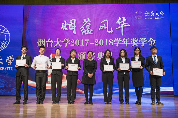 典礼以展示不同类别获奖学子风采的视频短片《奋斗点亮青春》开场。在全场热烈的掌声中,学校领导分别登台为各类奖学金获得者、先进班集体、社会实践优秀团队代表颁奖,并与获奖代表合影。绿叶制药集团人力资源部总监刘晓梅、山东圣凯建筑设计咨询有限公司副总经理牛世强、馨德奖学金设立者修先刚、金正环保科技有限公司人力资源总监费烟平、烟台金海洋国际船舶管理有限公司总经理刘清英、山东中润海联生态产业科技公司总经理陈为国等社会类奖学金设立代表受邀出席,并为获社会类奖学金的个人和集体代表颁奖。