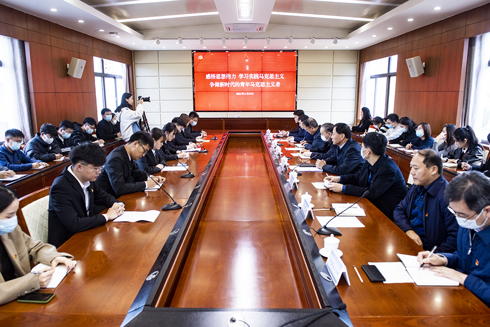 张殿臣从深入学习领会习近平总书记“七一”重要讲话精神和党的十九届六中全会精神入手,以争做新时代的青年马克思主义者为主线,深刻论述了学习实践马克思主义应把握三个基本向度,希望广大青年始终高扬马克思主义伟大旗帜,自觉坚持以习近平新时代中国特色社会主义思想为指导,在学习百年党史中领悟马克思主义为什么行,在紧跟党奋斗中争做新时代青年马克思主义者,以昂扬风貌和优异成绩迎接党的二十大胜利召开。