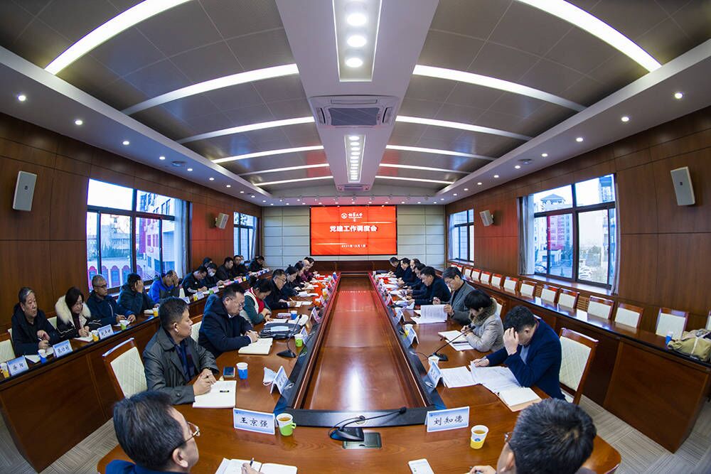 【本站讯】12月1日下午,sunbet申搏官方网站召开党建工作调度会。会议深入学习贯彻党的十九届六中全会精神,传达学习全省基层党建工作座谈会精神,对当前学校党建和思想政治工作进行安排部署。党委书记张殿臣出席会议并讲话,党委工作部门负责同志和二级单位党组织书记参加会议。党委常委、纪委书记周胜良主持会议。