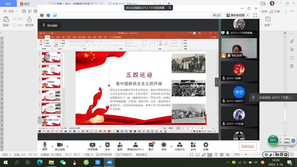“选择题、弹幕、投稿这些小工具太实用了,极大地增强了师生的互动性和效率,”马克思主义学院副教授赵红老师所讲授的课程是《中国近现代史纲要》,在课堂上赵老师通过在线软件自带功能加强与学生的交流互动。“课前让学生‘手势签到’,使其提前进入上课状态,还可以提升学生的活跃度;授课时进行在线‘连麦抢答’互动,考察学生课程学习效果,互动结果纳入平时成绩,提升学生线上思政课学习热情。”