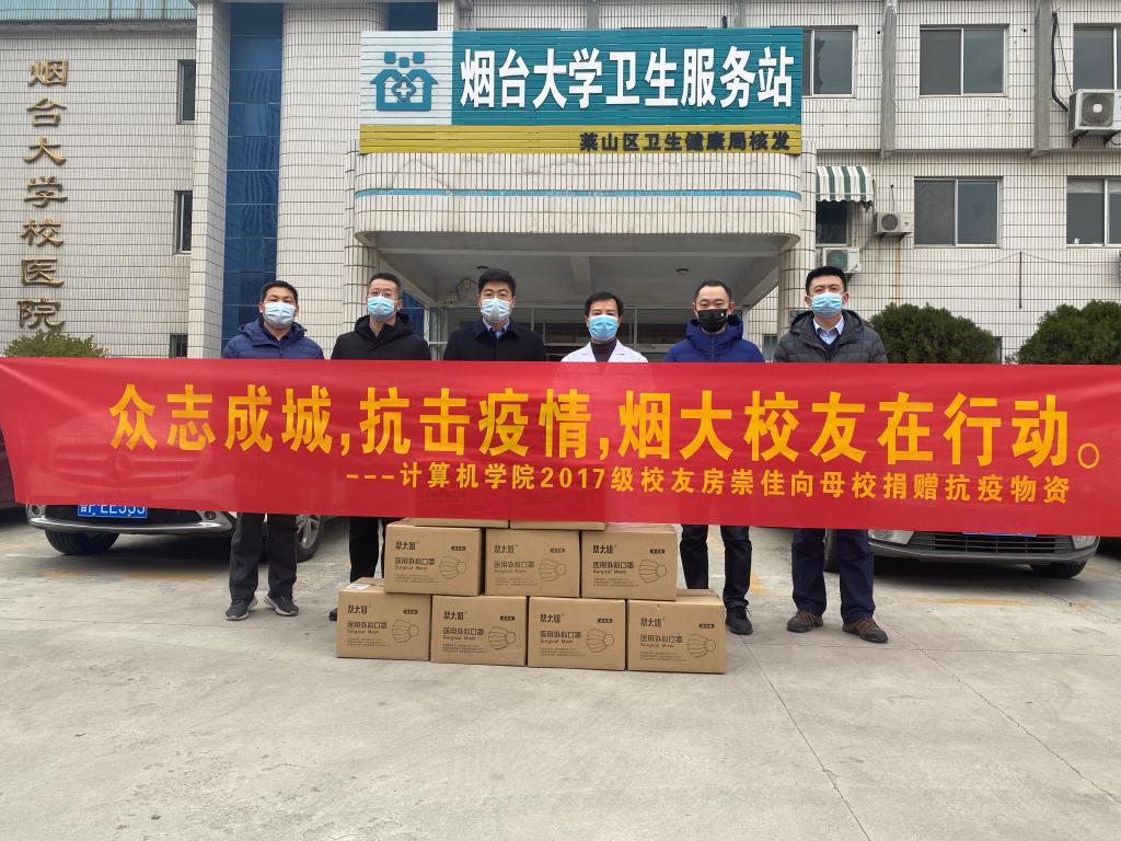 计算机与控制工程学院2017级校友房崇佳一直心系母校疫情防控工作,为学校捐赠了10箱总计10000只一次性医用外科口罩,校友工作办公室、计算机与控制工程学院、校医院、国有资产管理处相关负责人代表学校接受了捐赠。