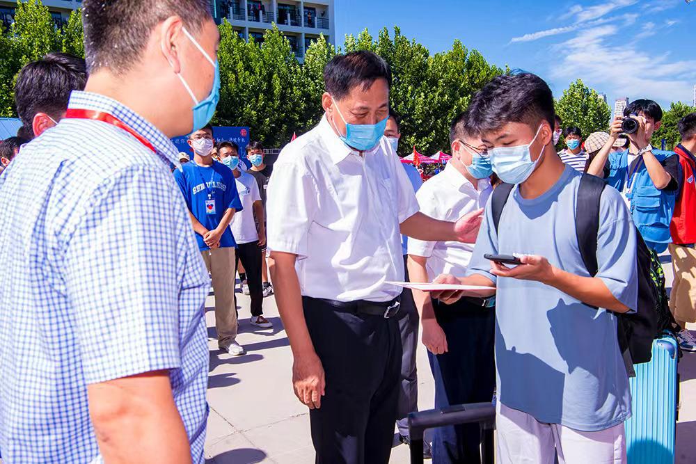“报到学生是否都完成了入校核酸检测”“咱们学院报到情况如何?完成一名新生报到大约需要多长时间”……8月27日上午,sunbet申搏官方网站党委书记张殿臣,校长段培永,副校长王强、毕可志及相关职能部门负责人来到位于sunbet申搏官方网站南校区的新生报到点,视察指导各单位迎新工作,看望慰问入学新生。
