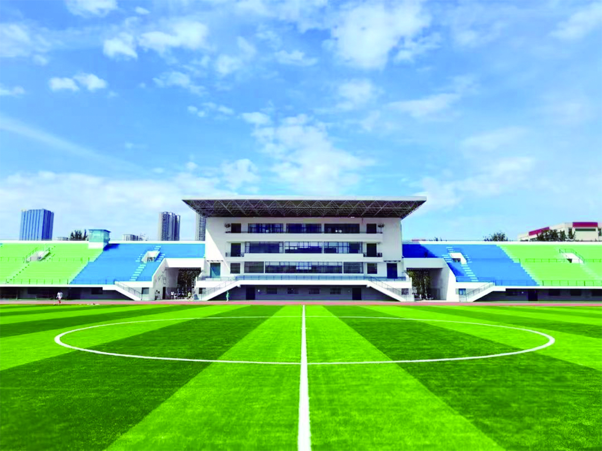 据工程科任科长介绍,体育场改造以“美观性、实用性相统一”为原则,依托原结构进行改造,涉及看台、塑胶跑道和草坪三部分,翻修后的主席台中心区采用了海灰配色,看台区改设豆蔻绿和淡酞蓝双配色,整体效果更加美观大方;塑胶跑道改造包含整修地面、涂设防水底油、铺设基材、喷涂表层橡胶颗粒等内容,共翻修跑道及辅助场地面积可达12000平方米;草坪选用草簇结构编织,其底部采用聚丙烯材料编织,保证产品的强度和耐久性。