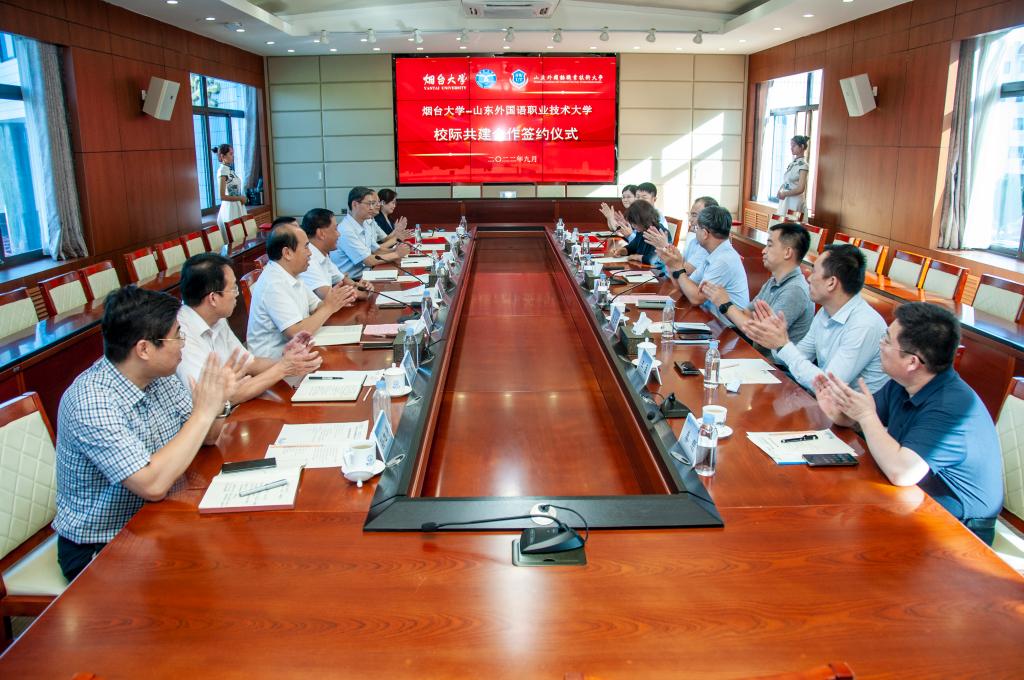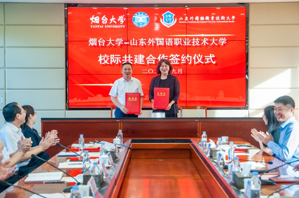 sunbet申搏官方网站校长段培永与山东外国语职业技术大学校长杜琳签署校际共建合作协议。