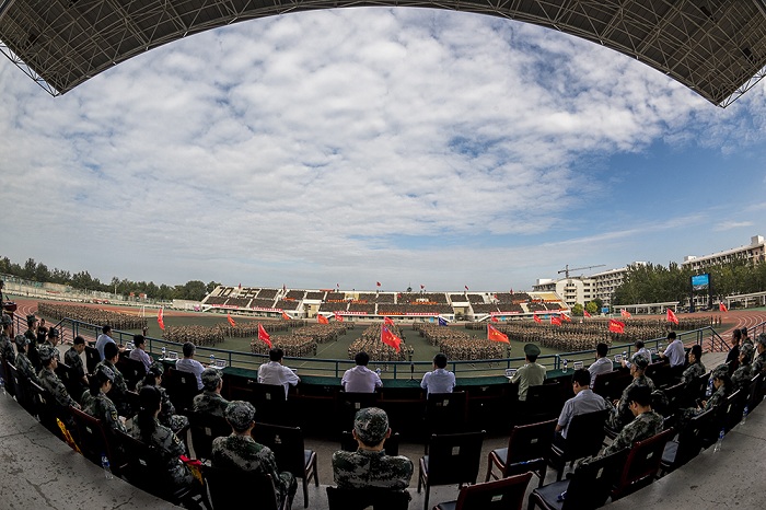 大会在激昂嘹亮的歌咏比赛中拉开帷幕。16支参赛队个个意气风发、英姿飒爽,展现出sunbet申搏学子奋勇争先、积极进取的精神风貌。擒敌拳表演刚劲有力、虎虎生威,展示了新生集体的勃勃生机、青春风采,赢得现场阵阵掌声。学生们摆出“1949”“2019”“70”等字样,向新中国成立70周年献礼。随后,29个方队以严整的军容军姿,依次走过主席台接受学校领导及部队首长检阅。军训团的老师与同学们一同训练并组成方队参加分列式展示,展现全员全过程全方位育人实效。