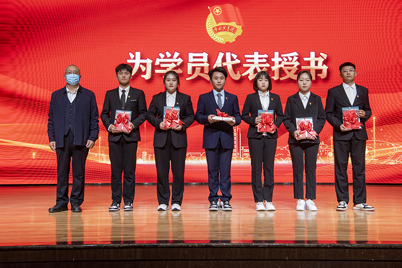 党委书记张殿臣为第十三期青马班代表授旗并对本次培训提出希望和要求,他强调广大团员青年要以理想信念擦亮青春底色,做“有志青年”;以过硬本领夯实人生根基,做“有才青年”;以品格修为守住道德底线,做“有德青年”;以责任担当谱写奋进篇章,做“有为青年”。同时勉励学员要牢记习近平总书记的嘱托,在党的领导下,以理想者、担当者、吃苦者、奋斗者的姿态,奋进新征程,诠释新青春,创造新业绩。开班仪式在全场齐唱《光荣啊!中国共青团》中落下帷幕。