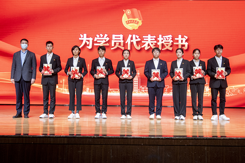 开班仪式在雄壮激昂的国歌声中拉开帷幕。校领导为学员代表赠送学习用书,团校培训学员代表和青马班学员代表分别上台分享了自己的感悟,代表参训学员表示将珍惜本次培训机会,坚定理想信念,强化理论学习,牢记习近平总书记在党的二十大报告中的殷切嘱托,立志做有理想、敢担当、能吃苦、肯奋斗的新时代好青年。