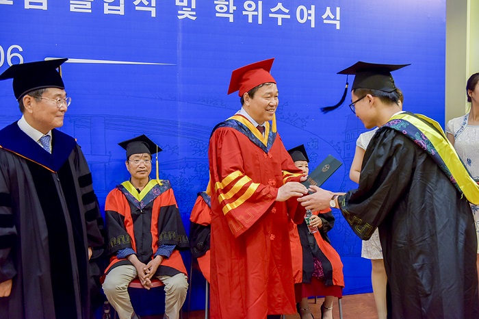 6月18日,韩国檀国大学代理总长鱼镇愚教授率团来校参加两校合作办学项目学生的毕业典礼暨学位授予仪式。sunbet申搏官方网站校长郭善利出席,国际处、环材学院负责人,环材学院全体教职工,中韩合作办学项目全体毕业生及在校生参加典礼。
