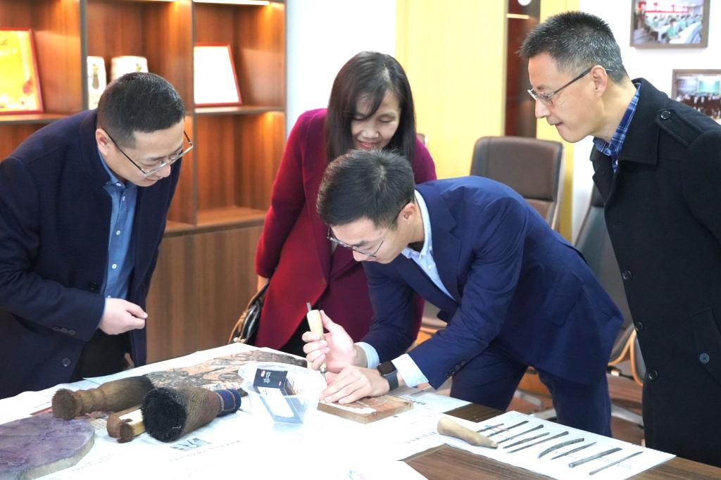 针对进一步推动中华优秀传统文化走向国际,中德特里尔学院党总支书记张西俊表示,学院将坚持守正创新,充分挖掘木版年画的传承与发展潜力,定期举办非遗体验工作坊,为非遗传承基地打造开放、融合的环境。下一步,学院将深化国际交流合作,引领广大学子传承中华文化基因,讲好中国故事,推动中华优秀传统文化走向国际。