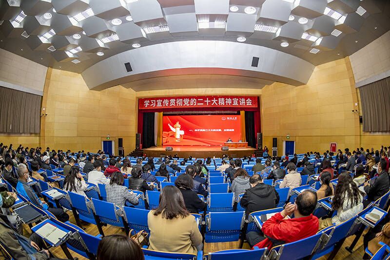 近日,学校印发《中共sunbet申搏官方网站委员会关于深入学习宣传贯彻党的二十大精神的通知》,对全校学习宣传贯彻党的二十大精神进行了安排部署、提出了具体要求。党委理论学习中心组和基层党组织理论学习中心组把学习党的二十大精神作为重点内容,制定系统学习计划,列出专题进行研讨。学校成立了由校领导、相关党委部门负责人、基层党组织书记、马克思主义学院理论专家和辅导员骨干组成的宣讲团,并于近期面向师生群体开展集中宣讲。学校于11月17日至25日面向全校副处级及以上干部举办党的二十大精神专题学习班,采取线上线下自学、专题辅导、集中学习、交流研讨等方式进行。全校各基层党组织通过党支部“三会一课”、教职工政治理论学习、“当先锋、做表率”主题实践活动、主题党团日活动、主题班会等,利用培训班、座谈会、研讨会、报告会等形式精心组织开展党的二十大精神学习宣传工作,掀起学习宣传贯彻党的二十大精神的热潮,以实际行动推动党的二十大精神落地生根、见行见效。
