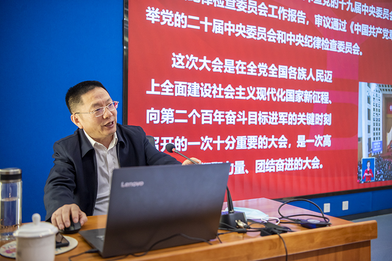 段培永围绕党的二十大的主题、主要成果,过去5年的工作和新时代10年的伟大变革,马克思主义中国化时代化,中国式现代化,全面建设社会主义现代化国家的目标任务,坚持党的全面领导和全面从严治党,应对风险挑战,将学习成效转化为提升学校核心竞争力的生动实践等八个方面,对党的二十大精神进行了系统宣讲,对不断深化人才培养、科技创新、人才集聚的有机融合,实现学校各项事业高质量发展的主要举措进行了深入解读。