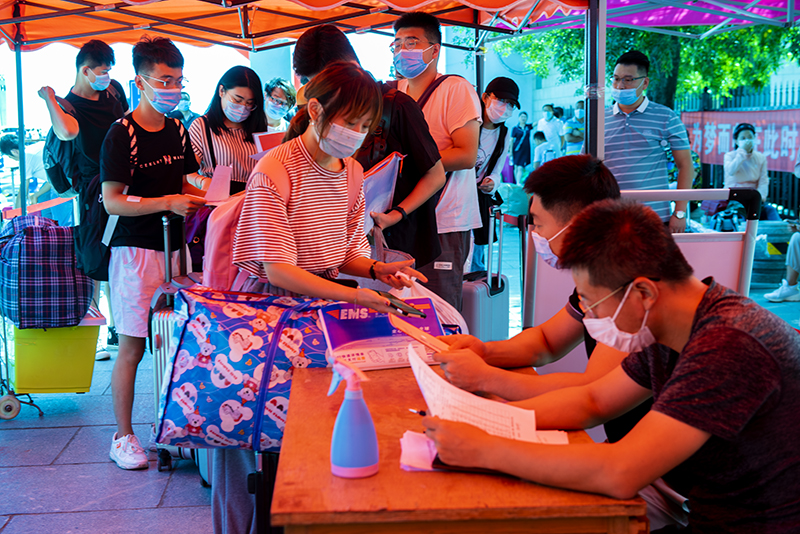9月3日,sunbet申搏官方网站1100余名2020级研究生入学报到,各相关部门、17个迎新学院严格遵守疫情防控相关要求,暖心迎接新生的到来。从严冬到初秋,寂寥许久的烟园注入一批新鲜血液。