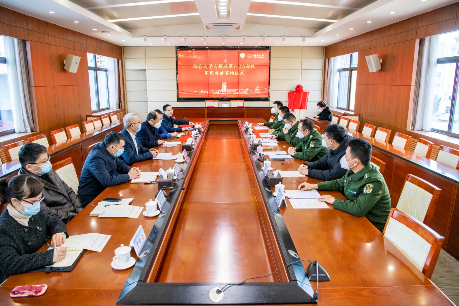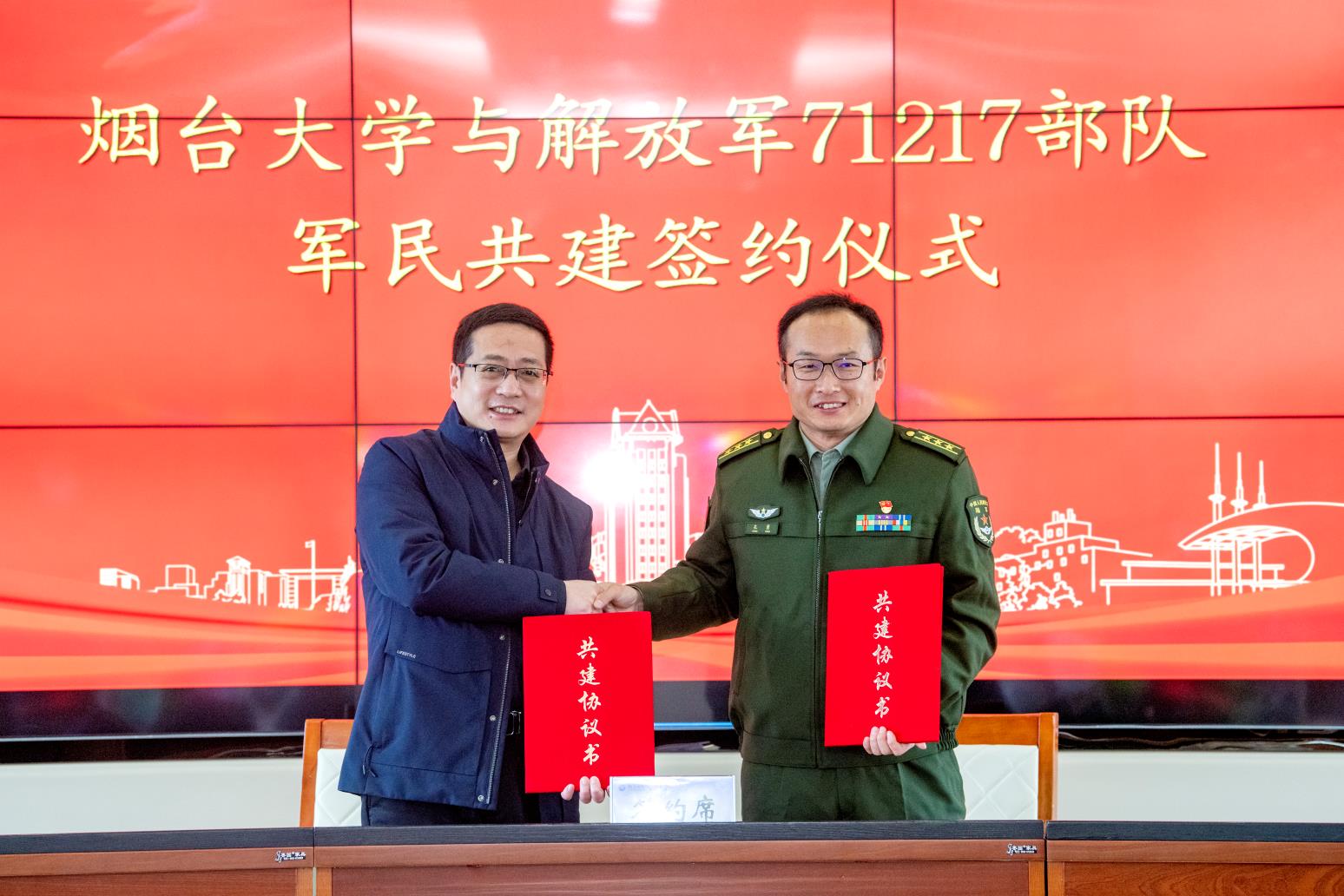 【本站讯】为推动军民共建社会主义精神文明活动深入开展,进一步构建和谐的军民关系,巩固和发展军政军民团结,12月16日上午,sunbet申搏官方网站与解放军71217部队成功结对,并签订共建共育协议。解放军71217部队政治工作部上校主任孔勇、政治工作部中校副主任孙宝山、68分队中校营长李洞元、烟台市退役军人事务局副局长刘克诚,sunbet申搏官方网站党委常委、副校长毕可志,党委常委、宣传部部长于秀国出席仪式。