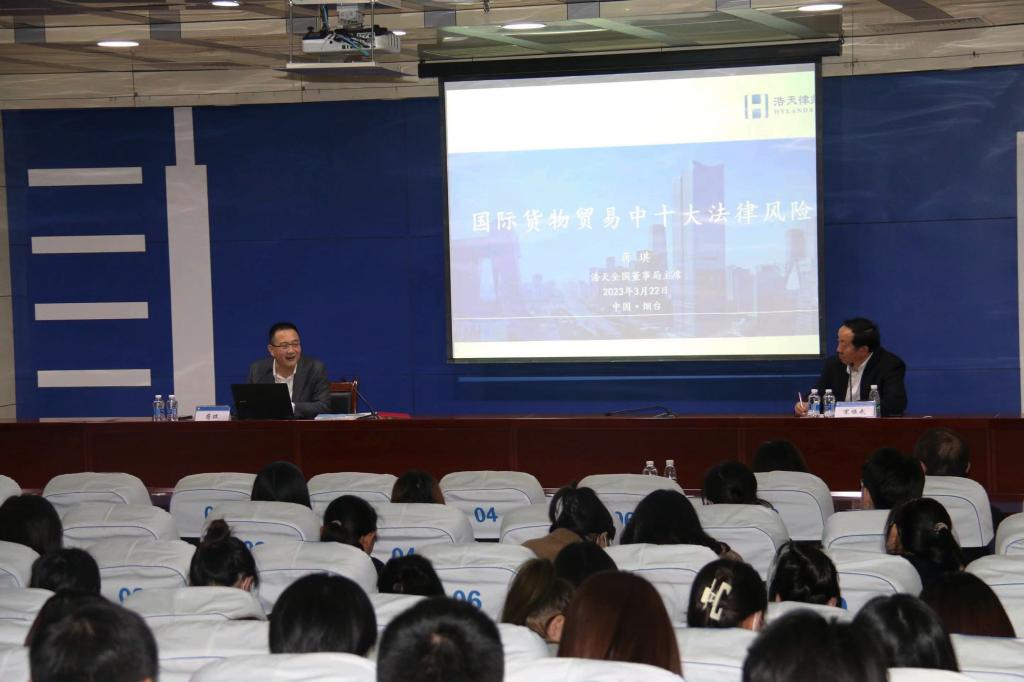 座谈会后,蒋琪在逸夫厅作了题为《国际货物贸易中十大法律风险》的讲座,法学院部分师生聆听了讲座。讲座结束后,蒋琪与现场师生进行了交流互动,现场气氛热烈,掌声不断。