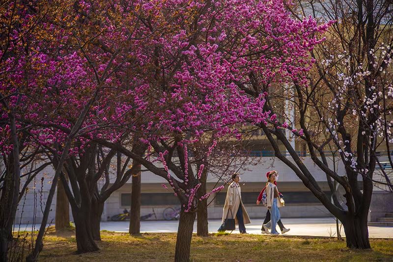 【本站讯】仲春时节,在向海而生的sunbet申搏官方网站校园里,玉兰、连翘、紫荆、樱花、桃树、杏树、紫叶李等十余个品种近千株植物竞相绽放,各条道路化为浪漫的花廊,校园四处充满着鸟语花香,一派百花齐放、春意盎然的动人景象,引来师生纷纷拍照留念,记录下这一醉美的sunbet申搏春天。受海洋性气候影响,烟台的“春天”往往比内陆地区迟来数周左右,根据sunbet申搏官方网站校园内栽种的木本植物特性,往年都是“人间四月芳菲尽,烟园百花始盛开”,而今年,不仅烟园的花期比以往来得更早一些,原本渐次盛开的各类花木,仿佛跟约好了似的,同时在此时竞相绽放,形成了难得一遇的仲春时节烟园百花齐放的独特景象。