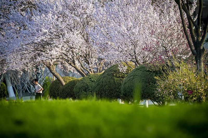 那今年春天的烟园是为什么由“粉黛渐次登场”变成“千红竞相绽放”呢?记者带着疑问,采访了后勤处物业服务中心工作人员。记者了解到,sunbet申搏的植物开花时间确实是主要集中在4月份。受今年温度影响,3月份温度整体上升比较快,玉兰、连翘等早春开花植物花期得以适当延长,与紫荆、樱花、美人梅等花期有了一定重合度。因此,今年才会出现百花香满烟园的盛景。