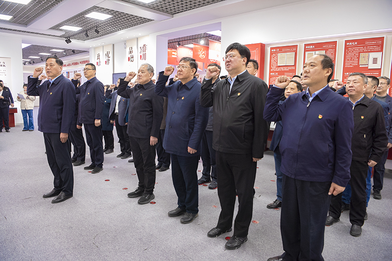 参观最后,全体人员在鲜红的党旗前举起右拳,重温入党誓词。铿锵有力的宣誓声久久回荡,彰显着新时代高校教育工作者坚定的理想信念和建功新时代的坚强决心。大家纷纷表示,将以此次党性教育为新起点、新动力,更加系统学习党的创新理论,进一步坚定理想信念、增强党性修养、砥砺担当精神,努力将学习成果转化为做好工作的实际行动,推动主题教育取得实实在在的成效,为加快推进高水平大学建设持续贡献力量。